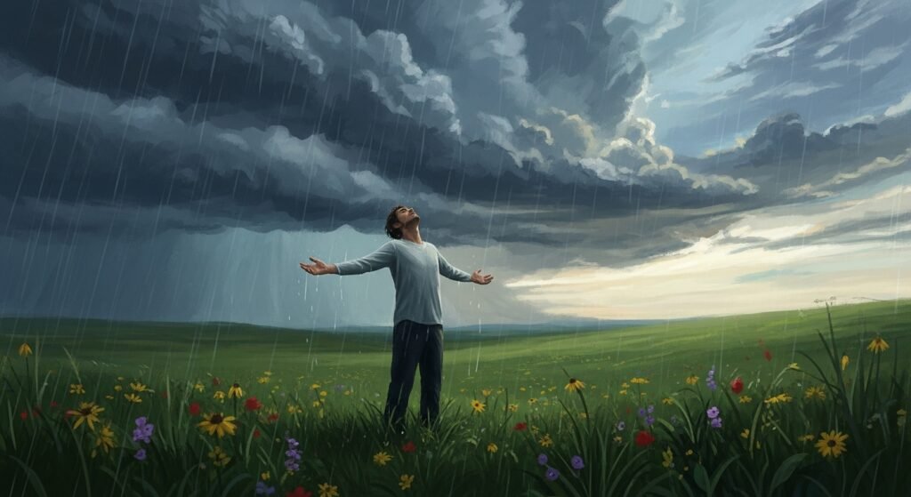 I wanted the rain to become more than just water — it’s the cleansing force that clears old dust, the necessary chaos that allows new growth. In just six lines, the poem transitions from anticipation to acceptance, demonstrating that courage often arises in the quietest of moments.